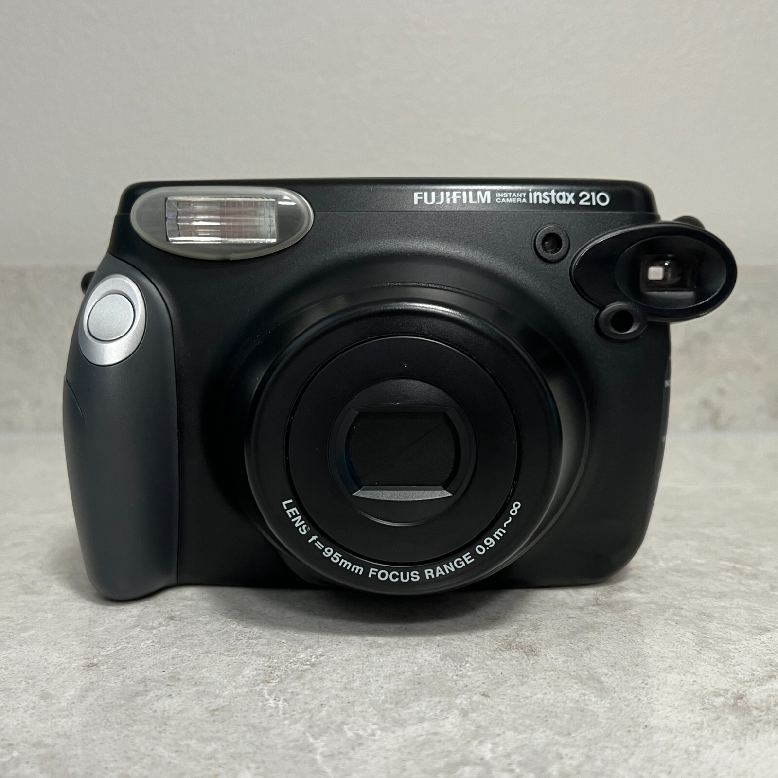 Fujifilm Instax 210 Polaroid Camera - TESTED & WORKING Excellent condition as pictured Camera dimensions: 7.5" long x 5" wide x 4" tall Photo dimensions: 4.25" wide x 3.5" tall Includes 5 packs of 10 sheets of photo paper. They are past their expiration date but they were stored properly so they still work, tested with a separate pack in the same lot.