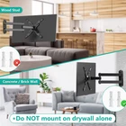 Please check the mount compatible for your TV: Please check wood studs in your wall first. The mount can also be used on concrete wall and brick (Anchors already included), but it can’t be used on drywall. Check your TV weight and size, your TV size should be between 13-42 inches, and weight less than 44lbs (20kg). Compatible the VESA mounting holes on the back of your TV, the mounting holes must be less than 8”x8” (200x200mm). Please check TV cable and input area first, its possible blocked cable or input by the mount. Product Specifications: Fit 13” to 42” flat screen TV. Support weight up to 44lbs (20kg). Compatible with VESA mounting holes patterns:200x200mm/ 200x100mm/ 100x100mm/ 75x75mm (8"x8"/8"x4"/4"x4"/3"x3"). Fully adjustable 8 degrees upward and 12 degrees downward; swivel up to 180 degrees; +/- 3 degrees rotate. Dtachable modular extension arm that can be detached and reconstructed into 3.25", 6.75", 10.5" and 14" four different length extension arms. Package Includes: 1 x TV Wall Mount 1 x User Manual 1 x Standard Mounting Hardware Compatibility: Fits most 13-42" flat screen TVs and monitors, and support weight up to 33 lbs. Compatible with plate (mounting hole pattern): 75x75mm, 100x100mm, 200x100mm and 200x200mm Fully Adjustable: +/-15 degrees tilt; 180 degrees swivel and 360 degrees rotate for better-viewing flexibility Space Save: Places TV just 2 inches from the wall to enhance the look of ultra-thin LED TV. Extends up to 15" from the wall for the space saving Installation: 5.9” X 1.6” wall plate can be mounted on any vertical wood studs, brick, or concrete wall (Do NOT mount on drywall alone) Package Includes: TV Wall Mount Bracket x 1, Mounting Hardware Kit x 1, User Manual x 1, experienced and friendly US based customer support available to assist 7 days a week