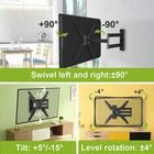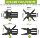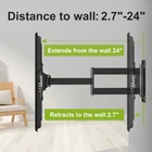 【3 “Check”】 1.Check the VESA holes on the back of your TV or monitor: Must match--100x100(4”x4”), 200x100(7.87”x4”), 200x200(7.87”x7.87”), 300x300(11.8”x11.8”), 400x200(15.7”x7.87”), 400x300(15.7”x11.8”), 400x400(15.7”x15.7”), the max weight up to 88lbs. 2.Check the specs of your TV or monitor: The weight must be lighter than 132lbs; And the screen size is 26” to 55”; 3.Check wall types: Designed for use in wood stud, solid concrete walls. DO NOT install into drywall ALONE. --Installing in concrete wall may need anchors, to avoid any misuse, it is not included in the package, please contact us to get it if you need, which will be sent from USA. 【Larger Loading Capacity】 VESA Hole Pattern: 100x100, 200x100, 200x200, 300x300, 400x200, 400x300, 400x400; Loading Capacity: up to 88lbs; Saving Space: the MIN&MAX distance to wall 2.7—24 inch TV & Monitor Size: for most of 26” - 55” screen; Adjustable Angle: Tilts 0°/-10°, move ±1° to keep TV leveling for optimal viewing angle.(depends on your TV or monitor) 【WHAT WILL YOU GET?】 Come with bubble level, all standard mounting hardware: ►6ft HDMI-1pc; Velcro-3pcs. ►TV Screws: M4*12mm-4pcs, M4*30mm-4pcs; M6*12mm-4pcs, M6*35mm-4pcs; M8*25mm-4pcs, M8*45mm-4pcs. ►Spacers: M6*17mm-4pcs, M8*22mm-4pcs, 10mm-4pcs, 2.5mm-8pcs. ►Washers: M4-4pcs, M6-4pcs, M8-4pcs. ►Lag bolt-3pcs; M6*8mm bolt-8pcs; Allen key-1pc ►Instruction & Packing box. 【EASY TO INSTALL】 --We developed a easy installation process and a manual that is actually useful, and provide the necessary hardware. For the better and safer user experience, please follow the instruction to install the product. TV WALL MOUNT COMPATIBILITY: TVs & Monitors wall mount corner bracket fits for most of 26-55 inches (including 26 32 35 37 40 42 43 47 50 55) with VESA size available 100x100/200x100/200x200/400x200/300x300/400x300/400x400mm, max weight up to 88lbs. TV bracket designed for single stud, brick and concrete walls, not to drywall alone application. FULL MOTION & ADJUSTABLE TV MOUNT:+/-90º rotation design(TVs smaller than 50 inch can be fully rotated 90 degrees),swivel TV to cover any angles in your home for the ultimate viewing experience.Tilt +5°/-15°function can adjust the comfortable angle,and reduce shoulder or neck pain, and avoid anti-glare from lights and windows. FAST AND EASY INSTALLATION: All mounting hardware included hardware in pre-labeled bags, and detailed step-by-step installation instruction to assist your installation.Concrete anchors will be sent per request.In order to avoid customer misusing concrete anchors onto wood studs or drywall directly causing any safety issues, we removed concrete anchors from our package. LONG EXTENSION & SAVE SPACE TO WALL:24inch Extra Long extension with Excellent range of motion, Longer than Other TV wall mount.tv hanger ideal for Corner or even over a fireplace, cabinet or anywhere you want.also,you can retract 2.2" to the wall to save place GOOD QUALITY & 10-YEAR CUSTOMER SERVICE: Heavy duty steel Design, Sturdy Wall Mount Protect TV From Falling and without bend.factory over 20 years’professional production experience,US based customer support team answers your pre-purchase and installation questions.