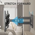 Articulating Full Motion TV Mount for 37"-85" Flat Curved TVs, TV wall Mount with Swivel and Tilt up to 135lbs, TV Mount Bracket Fits LED LCD OLED 4K TVs 12″/16″ Wood Studs Max VESA 600x400mm REINFORCED MATERIAL: This large swivel TV wall mount is made of reinforced material and is far heavier than its counterparts, with the product weighing a whopping 17.9 lbs. Because of the reinforced material, it performs exceptionally well in terms of load bearing, providing a solid support limit of well over 135 pounds for large TVs, keeping your TV stable and mount on the wall. WIDELY COMPATIBLE: The articulating arms TV wall mount fits most 37~85 inch TVs, compatible TVs VESA from 200x100 to 600x400mm can be mount. wall mount TV bracket can be install on 12″/16″ wood studs, solid concrete walls or brick walls. (Do not mount on drywall alone) EASY INSTALLATION: This full mobile TV bracket is very easy to install, you can also mount your TV on the wall as fast as a professional installer, the TV wall mount bracket comes with the screw accessories needed for installation (including the necessary screws to be used to fix the wall and the back of the TV), and a level. THICKENED DOUBLE ARTICULATED ARM DESIGN: The solid and sturdy swivel TV wall mount features a thicker double articulated arm that provides greater support and carries your TV set stably. SWIVEL AND UP / DOWN ANGLE ADJUSTABLE: The large swivel TV wall mount can be swiveled +/-45° from left to right angle and +5°-15° angle adjustment from up to down according to your needs, and it stretches 17.3 inches forward. Get the pleasure of watching TV programs from multiple angles.