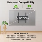 Universal TV Mount: The TV wall mount fits for most 32-70 inch TVs up to 99 lbs, with VESA of 75x75mm - 400x400mm. The TV mount can be mounted to 12/16 Inch wood studs, concrete, or brick walls. Please verify the size, weight, and VESA pattern of your TV before purchase Upgrade Your Viewing: This swivel TV mount tilts -12°/+5°to reduce glare, and swivels the TV left or right according to your seat position for the best viewing angle. The full motion TV wall mount with dual articulating arms provides a smooth 15.7" extension and retract back to 3.4", making your TV alive to move Sturdy and Safe Design: Made of sturdy cold-rolled steel, the wall mount TV bracket with dual articulating arms is designed with extra strong load-bearing structure to support up to 99 pounds of TV, which holds the TV securely and keeps the TV and your family safe Easy Installation: Installing a TV wall mount has never been easier. Simple 3-Step Install: 1) Screw the brackets to the TV 2) Bolt the wall plate to the wall 3)Attach your TV to the wall plate. Tips: If you need concrete anchors, please contact us to get it which will be sent from the USA US-Based Customer Service: Friendly Support - Our professional support team is available to answer your pre-purchase and installation questions
