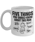 Funny Cat Dad Mug Five Things You Should Know About This Man Coffee Cup White Product Details.. This high quality 11oz. ceramic white mug has a premium hard coat that provides crisp and vibrant color reproduction sure to last for years. Perfect for all hot & cold beverages. The highest quality printing possible is used. It will never fade no matter how many times you wash it. Material: 100% Ceramic. Print both sides. Dishwasher and Microwave Safe. High Gloss + Premium White Finish. Printed in the U.S.A. Personalized & Custom. We support personalized and custom mug to add custom, when placing an order, you can add notes to the "order note" in shipping address section. Also you can contact us directly via message. Shipping Info. Ready to ship in 1 to 2 business days, All products are made-to-order and proudly printed in the United States. Shipped by USPS and DHL, You will receive your order in 5-7 days. Replace & Refund. All products are defective during shipping broken, chipped will be replaced free of charge. You are not satisfied with the product, we will refund 100% money to you. If any other issues arise, please do not hesitate to message, we would be more than happy to assist you.