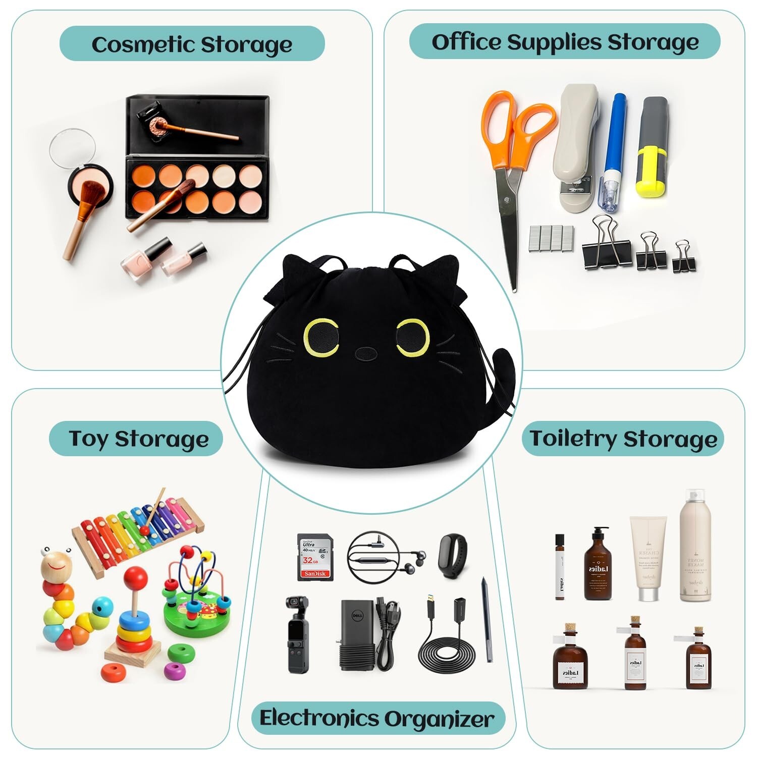 Funny Cat Drawstring Makeup Bag - Large Capacity Cute Travel Toiletry Bag Cosmetic Bag Pouch Organizer - Valentines Day Mothers Easter Birthday Unique Gifts for Women Girls Cat Lovers-Black Product Details Product Dimensions: 14.13 x 11.42 x 7.83 inches Item Weight: 10.8 ounces Department: Unisex Country of Origin: China Item model number: CB0816 Charming Cat Design: This cute black cat makeup bag adds a playful touch to your routine. Perfect for any cat lover, its both functional and fun. Large Capacity Design: At 9x9x7.5 inches, its spacious enough for makeup, large skincare items, and toiletries, keeping you organized on the go. Quick Access: The double drawstring makes opening easy, with an inner zip pocket and mesh compartments for quick access to essentials. Versatile Use: Great as a makeup or toiletry bag, its also perfect for small items like toys or snacks. Lightweight and durable for travel and daily use. Ideal Gift: This adorable bag is a unique gift for cat lovers, perfect for occasions like birthdays, Christmas, Halloween,Easter or Valentines Day.