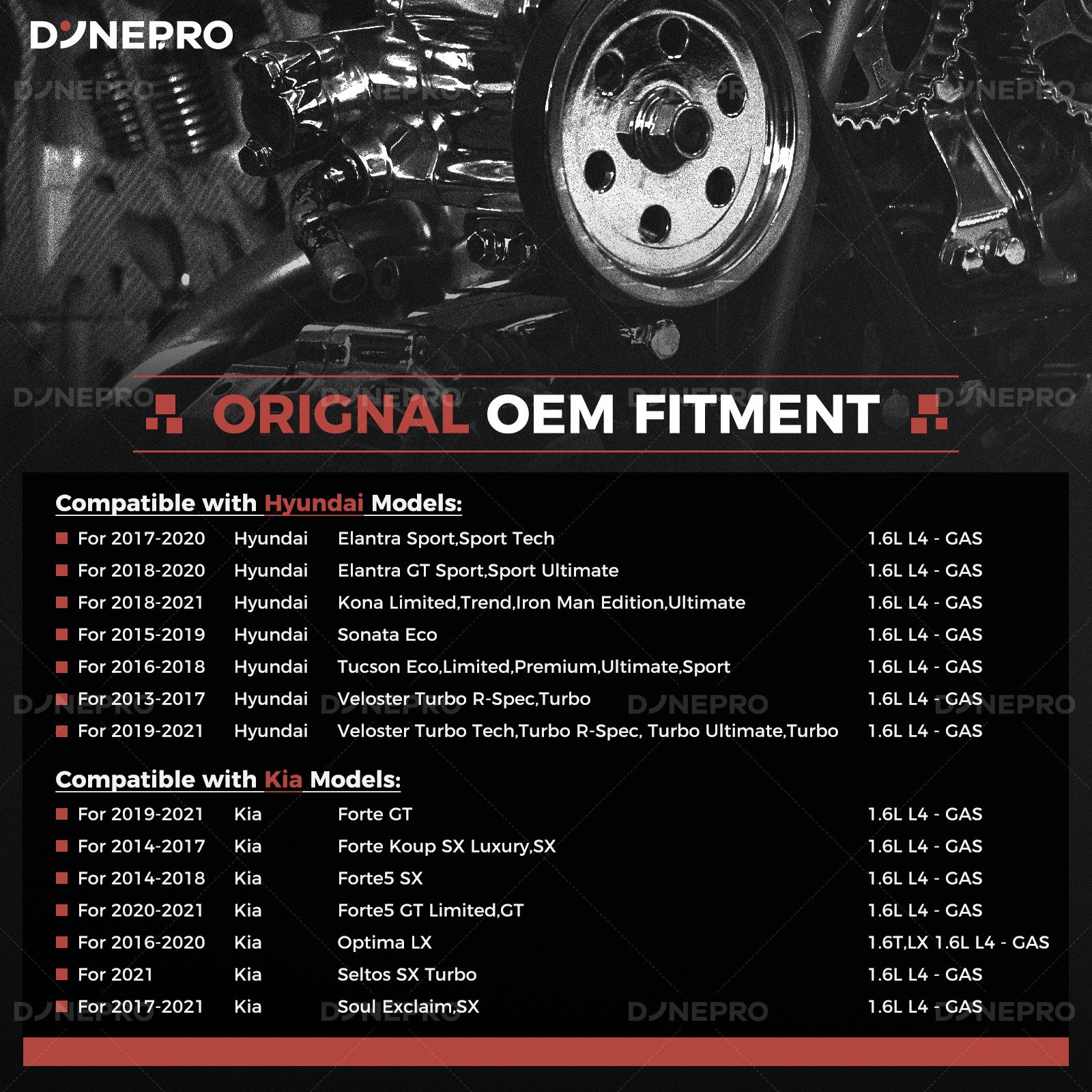 Engine Parts Installation Guide About Us Contact Us Feedback Dynepro® Pro Series Master Engine Rebuild Kit For Hyundai OEM Spec Certified Engine Repair Kit Precision Engineered · Factory Reliability ⭕ Cylinder Gasket Set Five-layer composite structure: 0.1mm stainless steel liner (resists high-pressure deformation) Aramid fiber sealing layer (withstands 350°C continuous thermal shock) Graphite coating (self-adapting micro-gap filling) Passed 100,000 thermal cycling tests for factory-grade sealing. ⭕ Built For Hyundai Owners: ✔️ Oil sludge cleanup (Theta II/Lambda engine rebuilds) ✔️ Timing chain rattle fixes (Nu/Gamma engines, includes tensioner tool) ✔️ Turbo failure prevention (1.6T/2.0T models, full gasket/seal refresh) ✔️ 200,000km+ overhauls (full bolt kit with factory torque specs) ⭕ For Hyundai TechTrust : ✔️ Restore factory power. Drive with Korean precision. ✔️Order Now – Free OEM Repair Manual Included! Support: Email us (Master Techs on call) ⭕ Why Genuine? ⚠️ Cheap parts fail: Non-genuine pistons crack under GDI’s 150-bar fuel pressure. Knockoff chains stretch, causing valve-piston interference. ✅ for Hyundai spec Certified : 100% material compliance with Hyundai MS-350 durability standards. Direct from OEM Plant spec suppliers. 5-year unlimited-mileage warranty. Vehicle Application Compatible with: G4FJ 1.6L engines. for Hyundai Accent 2012-2018 1.6L GAS Naturally Aspirated for Hyundai Elantra 2017-2020 1.6L GAS Turbocharged for Hyundai Elantra GT 2018-2020 1.6L GAS Turbocharged for Hyundai Kona 2018-2020 1.6L GAS Turbocharged for Hyundai Tucson 2016-2018 1.6L GAS Turbocharged for Hyundai Veloster 2012-2017 1.6L GAS Naturally Aspirated for Hyundai Veloster 2013-2021 1.6L GAS Turbocharged for Kia Forte5 2014-2018 1.6L GAS Turbocharged for Kia Rio 2013-2017 1.6L GAS Naturally Aspirated for Kia Seltos 2020-2023 1.6L GAS Naturally Aspirated for Kia Seltos 2021-2025 1.6L GAS Turbocharged for Kia Soul 2011-2018 1.6L GAS Naturally Aspirated for Kia Soul 2017-2018 1.6L GAS Turbocharged Note: VIN confirmation required. What's included in this complete bundle set -Full Gasket Set -10 Cylinder Head Bolts Shop Now >> Instant Fitment Email your Hyundai model (e.g., Elantra, Tucson, Santa Fe) and year → Get a repair kit tailored to your VIN. Restore factory power, drive like new. Tech Support: Email us (Provide VIN for tailored parts list) Learn More Learn More Learn More PAYMENT We accept eBay managed payments for all orders. If you have any questions, please contact us. SHIPPING Ordering this kit requires additional information: the vehicle engine model as well as the VIN (17 digits), and also requires you to verify a match to your vehicle using the vehicle application data on Ebay. Be sure to provide this information when placing your order or via a separate message. Product will be shipped within 1-3 business days after full payment is received and verified. Delivery Time is about 3-7 business days to most of countries. We ship the package to your shipping address in eBay instead of the one in PayPal. Please tell us your shipping address if it is different from the one in eBay. RETURNS We offer eBay's best return policy. If you utilized Ebay's fitment and the parts you received do not fit your vehicle, we will pay to have them returned. Should you desire to return this kit for any other reason, Includes kits that are incorrect because you did not provide the VIN in the order notes, you will be responsible for return shipping. These kits are heavier and cost more to ship, so we ask that you provide vehicle information and verify suitability before ordering.Unfortunately, we cannot accept returns from international customers at this time. ★★★★★ So far the engine overhaul kit has performed well. I love the performance with this kit installed. On my 2004 F150. Installation was easy. Everything is perfect. Considering this kit is cheap, it doesn't get any better than this. ----James ★★★★★ This was a great price. lt was made in the USA. After 10,000 miles it is running great. ----Liam ★★★★★ As of the time of this review this is well worth the money and it fits as it should. ----Noah ★★★★★ This set was installed perfect fit. lt has been installed on a truck that has been used very much every day. Working perfect and so much cheaper than the auto stores. ----Ethan ★★★★★ Seemed to be a perfect replacement part and it works. ----Oliver ★★★★★ Everything fit how it was supposed to and have been driving it for a week with no problems. ----Benjamin ★★★★★ The seller was very nice and provided me with professional advice on the installation, which was a breeze and is still going strong after 10,000 miles. ----Michael On Oct 31, 2025 at 20:21:17 PDT, seller added the following information: