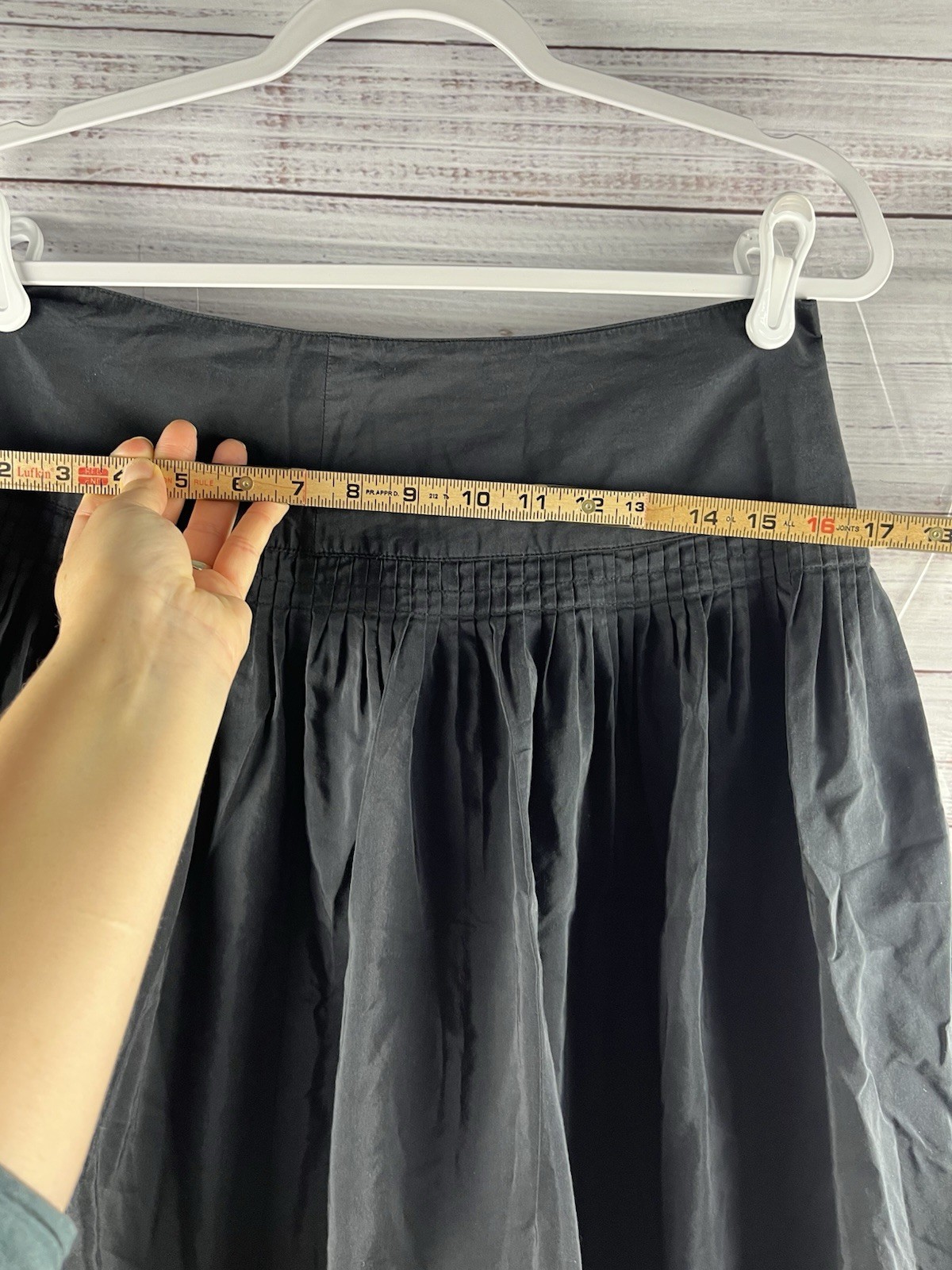 Enhance your wardrobe with the chic GAP Women's Skirt in size 4, a blend of style and comfort. The skirt boasts a timeless black color, with a pleated design that adds a touch of sophistication to any outfit. Made from luxurious silk material, it promises a smooth and lightweight feel, perfect for transitioning from spring to summer. Featuring a mid-rise fit and a convenient zipper closure, this skirt caters to various occasions, be it casual gatherings, business meetings, or cocktail parties. Its short length and metallic accents provide a modern edge, while the lined interior ensures a flattering fit. Whether paired with a crisp blouse or a casual tee, this versatile piece is sure to elevate your look.