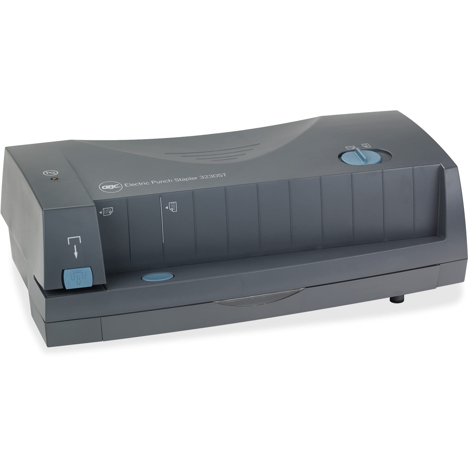GBC Electric Paper Punch/Stapler, 2-3 Holes, Adjustable Centers, 24 Sheet Capacity, Gray, Model 3230ST (7704280) Material Paper Color Gray Brand GBC Product Dimensions 12.2"L x 20.24"W x 8.39"H Item Weight 13.2 Pounds Simple push-button operation. Punches and staples up to 24 sheets at a time. Adjustable to 2-hole or 3-hole standard punch patterns. Paper alignment guide to ensure perfect punching. Staple guide to ensure aligned stapling. This electric punch also staples to help you efficiently manage your daily punching jobs. Simple Push button operation punches and staples up to 24 sheets at a time. Jam reverse knob easily clears jams and it comes with a staple guide to ensure aligned stapling. Limited one-year warranty. Shipping We offer FREE shipping on all orders! We ship within Three business days of payment, usually sooner. We use a selection of shipping services such as UPS, FedEx, USPS etc. We only ship to the lower 48 states, no APO/FPO addresses or PO Boxes allowed. Local pickups and combined shipping options are not provided at this time. Return You can return a product for up to 30 days from the date you purchased it. Any product you return must be in the same condition you received it and in the original packaging. Please keep the receipt. Payment We accept payment by any of the following methods: PayPal Please pay as soon as possible after winning an auction, as that will allow us to post your item to you sooner! Feedback Customer satisfaction is very important to us. If you have any problem with your order, please contact us and we will do our best to make you satisfied. Contact Us If you have any queries, please contact us via ebay. We usually respond within 24 hours on weekdays. Please visit our eBay store to check out other items for sale! Thank you for shopping at our store.