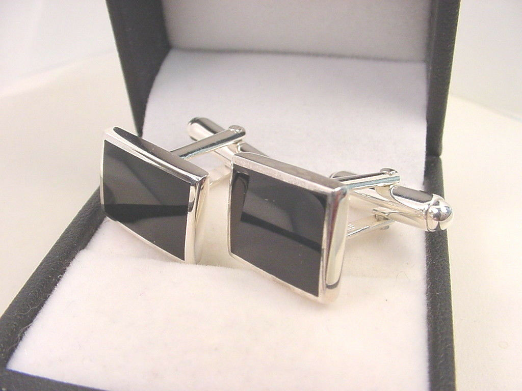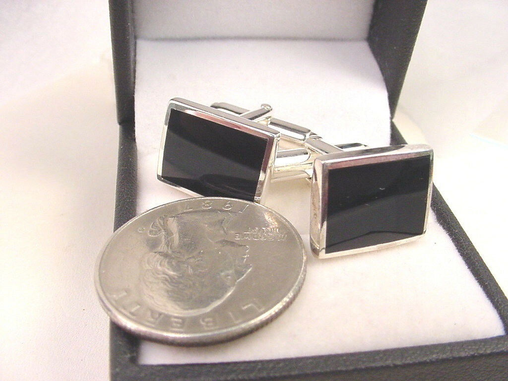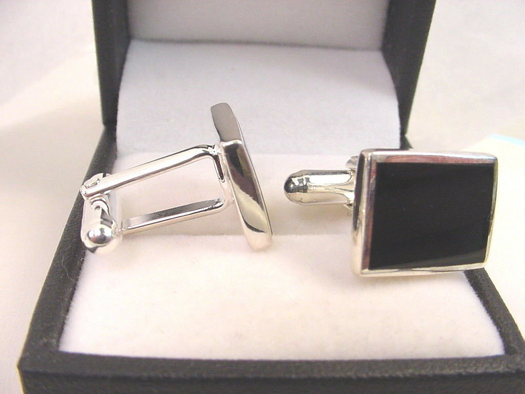Solid Sterling Silver...marked as shown in photos with the 925 Silver content hallmark and a maker symbol hallmark Genuine Natural Black Onyx Gemstone Spring loaded flip lever closure mechanism Please ask any questions.... We'll try our best to answer promptly...