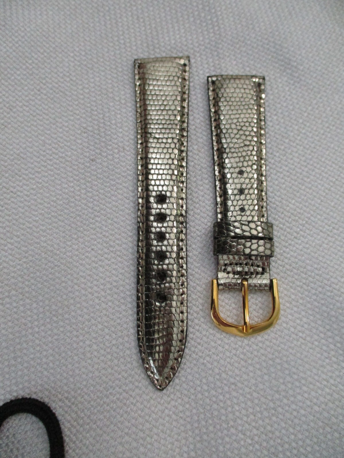 YOU ARE LOOKING AT NEVER USED : GENUINE shiny lizard exotic usa watchstrap watch band strap 20mm width is 20mm and strap is stitched with 2 self loops measured end to end: long strap (with 6 holes) is 4.5 " short strap including 16mm buckle is 3.5 " SMOKE AND PET FREE USA SHIPPING ONLY. PLEASE CONTACT ME THROUGH E-BAY ONLY. SEE MY OTHER ITEMS IN AUCTION. I AM HAPPY TO COMBINE SHIPPING. THANKS FOR LOOKING. PLEASE ASK QUESTIONS. I TRY TO DESCRIBE ACCURATELY AND WANT YOU TO BE HAPPY WITH PURCHASE SO IF ANY PROBLEMS, PLEASE CONTACT ME.