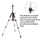 DIMENSION: Max Height: 55"; Min Height: 23.5"; Weight: 3.1lbs; Folded Height: 16.5", very portable. RELIABLE QUALITY: the tripod is made of premium Aluminum Alloy, which does not only have advantages of lightweight but also long service life, great for professional cosmetologists or students, salon&home use. POWERFUL ADJUSTABLE FUNCTIONS: adjustable legs and top piece meets your entire height & angle demand, the 360° rotatable top piece is compatible with most mannequin heads. CONSIDERATE DESIGN: With upgraded non-slip bases, and flexible leg-flip locks, this GEX mannequin tripod is more able to adapt to the ground, more stable and non-sliding. PACKAGE CONTENT: 1pc black carry bag for easy movement or traveling; 1pc user manual.