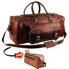 Genuine Leather Unisex Duffel Bag–Sport and Weekend Backpack with Pouch This leather duffle bag has three compartments, one big compartment for all your clothes and shoes, two small compartments with a zipper for all of your accessories. A perfect one for every situation whether you need to travel or for an outing. Having one is itself a statement to society. Material : Full Grain Goat Leather Colour : Vintage Brown Storage Capacity : Consists of a large central compartment with one front buckled compartment, two zipped side-segments and is significantly spacious. Unisex Duffle bag with detachable straps serves an uber-chic yet classy appearance. Hardware : Zip, Zip Slider and Buckles are manufactured from pure brass for an overall posh look. Sizes Available 24" Length x 10" Height x 10" Width (Best for Airplane Carry-on & Gym) 26" Length x 11" Height x 10" Width (Best for Airplane Carry-on ) 28" Length x 12" Height x 11" Width (Best for Gym, Travel, Vacation)