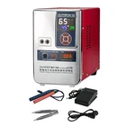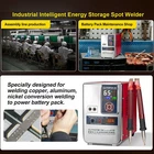 GLITTER 811H Battery Spot Welding Machine Aluminum to Copper/ Nickel 42KW 220V Description: GLITTER 811H Industrial intelligent spot welder, specially designed for welding copper, aluminum and nickel conversion. 42KW power optional, peak welding current up to 7000A. Features: 1. High-frequency inverter super energy storage capacitor discharge technologyeliminates interference to AC power supply, and avoid switch tripping situation. 2. Energy storage control and low-loss metal bus technologymaximizes the burst energy output. 3. The energy-concentrated pulse formation technology controlled by themicrocomputer chip operation ensures the formation of reliable solder joints in milliseconds. 4. lntelligent program combined with multi-function parameter display screen, themanagement of welding is clear at a glance, with high proficiency. 5. Up to 7000A pulse welding current: Support welding pure copper sheet, purenickel, nickel-aluminum conversion sheet, stainless steel. 6. Super energy-gathered pulse welding, solder joint concentrated and slender.deep penetration of melt pool, the soldered dot no blackening, no generate heat no damage to the battery. 7. Dual-mode spot welding to achieve precise, fast and efficient welding, which isconvenient for welding different weldments. 8. The unique real-time display of welding pulse current can monitor each weldingcurrent and avoid false welding of solder joints. 9. Supports optional removable professional welding pens with different functionsand performances to realize welding work from ultra-thin to ultra-thick weldments 10. Ultra-low loss, high-efficiency performance design, professional industrial-grademanufacturing process, to ensure the machine for a long time use without getting hot. S pecification: Type:Battery Spot Welder Model:GLITTER 811H Current:7000A Power:42KW Spot welding pen type: 50mm2 welding pen Copper to Copper(with flux): 0.15~0.45mm Copper to Stainless steel: 0.15~0.45mm Copper to Aluminum: 0.1~0.45mm Peak welding energy: 840J Milliohm resistance measurement:YES Charge current display:YES Power supply:220V Output Voltage:5.6~6.0V DC Charging current:10~20A Charging time:≤18 minutes Energy grade:0-99T(0.2ms/T) Welding mode: AT: automatic induction ; MT: foot-operated Welding tool:Mobile pen spot welding/Push down spot welding(Optional) Pulse time:20ms AT Preloading delay time:300ms Dimension:24x14x21cm Packing size:37x22x36cm Weight: 9kg What's in the package: - 1 x 811H sport welder - 2 x S-75A split welding pens (35mm2 or 50mm2 ) - 2 x Milliohm resistance measuring pens - 2 x S-75A spot welding electrodes - 1 x Pedal switch - 1 x Power cord - 1 x User manual NOTE: Batteries are not included