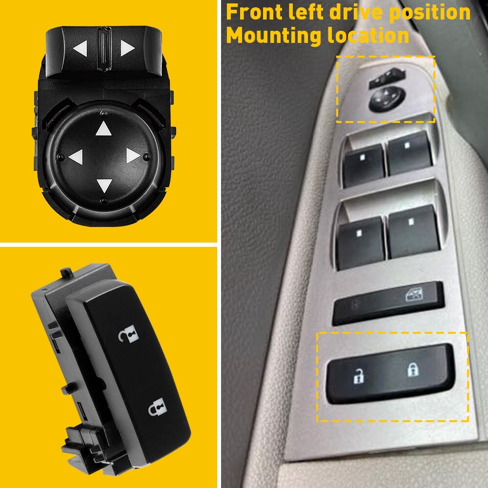 This door lock and mirror switch combo is a perfect direct replacement for my Silverado! Installation was a breeze—just popped the old one out and clicked the new one in. The switches feel sturdy, and everything works smoothly, just like OEM. Great fit for my 2012 Sierra 1500, no issues with the connections. Highly recommend if your stock switches are worn out—affordable and functions flawlessly. Double-check your OE numbers to ensure compatibility, but if they match, this is a no-brainer upgrade.