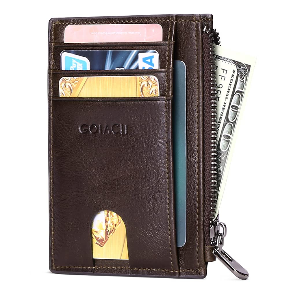 Description RFID-blocking wallets: The slim wallet can help to shield your cards from scammers. Convenient ID window: There is a finger hole for easily removing the front card. Lightweight & portable: It is a good choice for those who love the ultra-slim RFID-blocking wallet, especially minimalists and light travelers. Versatile enough for everyday use: The slim wallet features 7 slot compartments, which can hold all your needs. Great gift idea: Made of 100% genuine leather, well-crafted, comes in an exquisite gift box. Why do you need to use an RFID wallet? You need RFID protection to prevent thieves from using electronic devices to steal your personal information from driver's licenses, passports, and credit cards. What is RFID?RFID stands for Radio Frequency Identification. Chip-based technology is used in many roles by many industries and is commonly used in credit cards or passports for storing personal information. RFID Blocking interrupts and blocks the electromagnetic waves so that your data cannot be read by an unwanted RFID reader or scanner without your knowledge. 【Size, Ultra-thin, Lightweight and Portable】 🎄PLEASE MAKE SURE THE SIZE IS OK FOR YOU BEFOE YOU BUY. The thin wallet measures 4.7 x 3.3 x 0.2 inch. This front pocket wallet will perfectly fit in your front or back pocket. And it's easy to get credit cards and other cards in and out of slots. 【High-quality Genuine Leather Wallet with Zipper】 🎄The 💯 percent leather wallet is a thin-designed minimalist wallet with a zipper pocket to store bills and coins. In order to give you the best experience, we use high-quality pure leather that is softer, more breathable, and more durable. 【Secure RFID Wallets】 🎄Every card slot in our RFID BLOCKING wallet is equipped with advanced RFID blocking lining, which will protect the valuable information stored on RFID chips on the cards from unauthorized scans. 【Thin & Slim Wallet with Large Capacity】 🎄The slim wallet has spacious storage space to meet your daily needs: 1 front ID window, which can be used quickly when traveling, 6 card slots for storing credit or debit cards; and 1 slot for storing currency notes. 【Unisex, Ideal Gift】 🎄Our wallets are high on utility and durability, which make them perfect presents on Birthdays, Anniversaries, Graduation, Christmas, Wedding, Father's Day, Mother's Day or you name any occasion. 【Gift Box Included】🎄It comes with a presentable and beautiful gift box. It can be a perfect all-occasion gift for your near and dear ones. You will never be disappointed with your decision of buying and gifting it. Department name: mens Special features: Includes Card Holders