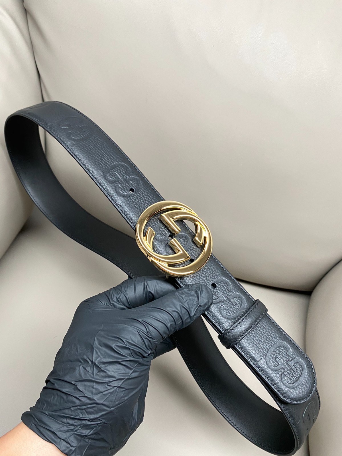 BELT GUCCI BELT BLACK LEATHER 100% AUTHENTIC Gold BUCKLE CLASSIC LOGO Width:4.0cm/1.57in Size: 80/32-Pants: 26-28, Waist (in): 25.59-28.74 85/34-Pants: 28-30, Waist (in): 28.74-31.50 90/36-Pants: 30-33, Waist (in): 31.50-34.25 95/38-Pants: 33-35, Waist (in): 34.25-36.61 100/40-Pants: 35-37, Waist (in): 36.61-39.37 105/42-Pants: 37-40, Waist (in): 39.37-43.31 110/44-Pants: 40-42, Waist (in): 43.31-47.24