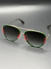 Free shipping from Miami, Florida! Delivery time 1-4 business days. Item Details: • Brand: Gucci • Model: GG0062S 003 • Gender: Unisex • Frame Color: Green/Red (Signature Gucci Web) • Lens Color: Grey Gradient • Frame Shape: Aviator • Frame Material: Metal • Lens Material: CR-39 • Lens Protection: 100% UV (UVA/UVB) • Lens Width: 57 mm • Bridge Width: 17 mm • Temple Length: 140 mm • Made in: Japan Features: • Authentic Gucci designer sunglasses • High-quality Japanese craftsmanship • Lightweight metal frame with classic double bridge • Adjustable nose pads for comfort and secure fit • Iconic green/red Gucci stripe on temples • Discreet Gucci logo on lens and temple • Suitable for both men and women What’s Included: • Original Gucci protective case • Microfiber cleaning cloth Condition: Brand new.