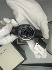 Free shipping from Miami, Florida! Delivery time 1-4 business days Watch Information Brand, Seller, or Collection Name Gucci Model number YA137101 Part Number YA137101 Model Year 2014 Item Shape Round Dial window material type Mineral Display Type Analog Clasp Buckle Case material Stainless Steel Case diameter 42 millimeters Case Thickness 13 millimeters Band Material Silicone Band size Standard Band width 22 millimeters Band Color Black Dial color Black Bezel material Stainless Steel Bezel function Stationary Calendar Date Item package weight 1.1 Pounds Movement Swiss Quartz Water resistant depth 165 Feet