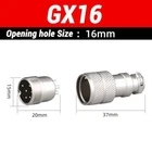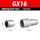 Aviation Plug 2,3,4,5,6-8 Pin 16mm GX16 Metal Male Female Panel Cable Connector Type: Aviation Plug Wiring:Soldering Model:Gx16 Series Shell Material:Zinc Alloy Optional cores:2/3/4/5/6/7/8 cores Contact material: copper nickel-plated Opening size:16mm Plugging times: about 500 times Connection method: screw connection Ambient temperature:-50~+70℃ Rated voltage: contact pairs 2pin/3pin/4pin for 400V, 5pin6pin7pin8pin for 250V Rated current:5A Contact resistance: the contact resistance of each contact pair is not more than 0.005Q Insulation resistance: not less than 100OMQ under normal conditions, not less than 200MQ after constant temperature and heat test Experimental voltage: 50Hz, RMS under normal conditions: 1500V for 2pin, 3pin, 4pin, 12000V for 6pin, 7pin. After the constant thermal temperature test: 2pin, 3pin, 4pin is 1200V5pin, 7pin is 1000V. Separation force: 1-3N for single-leg separation force, 1.5 times of the sum of the upper limit of single-leg separation force for total separation force. Temperature rise: at rated load, the temperature rise of the contact pair is not greater than the ambient temperature +50℃. Life expectancy: 500 times of plugging and unplugging should not be harmful to the plug to do mechanical and performance damage. ♥ Packaging includes According to your choice