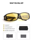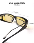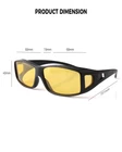 HD NIGHT VISION POLARIZED LENSES: HD polarized yellow lenses come with a special anti-reflective coating to effectively reduce glare from oncoming headlights and bright street lights, enhancing night vision performance and ensuring safe driving. Anti-glare lenses also provide greater clarity in foggy, overcast, rainy, night-time, and other low-light conditions, making them the perfect choice for night driving, motorcycle riding, cycling, running, walking, fishing, and other outdoor activities PREMIUM QUALITY MATERIALS: night vision glasses feature a durable, shatterproof frame, polarized shatter-resistant TAC lenses, and a sturdy flexible internal metal hinge structure. Additionally, they are designed with comfortable concave nose pads, non-slip temples, side lenses for improved peripheral vision, and anti-fog air holes for long-lasting wear. Every detail ensures a perfect wearing experience, offering all-day comfort WRAP AROUND DESIGN: night vision driving goggles for men women feature an excellent ergonomic wrap-around design, offering a larger coverage area to protect the eyes and face. The side lenses can provide better peripheral vision and glare protection. night driving glasses can also be conveniently worn over regular glasses (such as prescription glasses, myopia glasses, or reading glasses) as well as used directly without prescription lenses PRODUCT DIMENSION: Lens width: 68 mm (2.68 inches) | Lens height: 43 mm (1.7 inches) | Bridge: 18 mm (0.7 inches) | Frame length: 152 mm (6 inches) | Temple length: 151 mm (5.95 inches) night vision glasses offer exceptional durability and superior visual clarity and are specially designed for men women nighttime driving. Whether you are a man or woman, durable functional night vision glasses fully meet your expectations! PACKAGING & CUSTOMER SERVICE: Each pair of sunglasses includes sunglasses*1, microfiber pouch*1, microfiber glasses cleaning cloth*1, glasses box*1, designed to clean and protect your lenses from scratches and damage. sunglasses also come with exquisite packaging, making them a perfect, practical, .Enjoy premium brand customer service that ensures a satisfying shopping experience with every purchase!