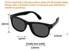 Gafas de sol para niños, polarizadas, con protección UV, de goma flexible Features: - 1 - Lentes polarizados 100% protección UVA UVB. - 2 - Fabricados con material de goma flexible y seguro para niños. - 3 - Vienen con bolsa y correa. - 4 - Lente de nueve capas, protegen más. - 5 - Ancho del marco: 123 mm, ancho de lente única: 45 mm, altura de lente: 40 mm, puente: 20 mm, largo de patilla: 131 mm (Estas gafas de sol son aptas para niños de 3, 4, 5, 6, 7, 8 y 9 años, con correas ajustables, pueden ayudar a sujetarlas cuando el niño hace deporte, una buena opción flexible para niños de estas edades. Podemos medir el tamaño de la cara de nuestros niños antes de la compra, tenemos el tamaño correcto en las descripciones de las viñetas). SHIPPING We are always working hard to ensure your package arrives as soon as possible. Please understand that some factors like weather, high postal traffic, and the performance of shipping companies are outside of our control. We offer free shipping to the lower 48 states and ship within 3 business days of payment, usually sooner. We do not accept P.O. Boxes. Please provide a physical address.