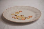 Old Vintage Gaiety by Sculptura Hearthside Stoneware 10-5/8" Dinner Plate Yellow & Orange Flowers Swirled Brown Trim Made In Japan Note: Plate stand not included. Please check out our other listings!