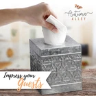 Premium Rustic Décor - Farmhouse Galvanized Square Tissue Box Cover blends sturdy metal with aged vintage charm, creating an eclectic mix. Infuse a touch of old-world grace and reclaimed goodness into your space with this square metal tissue box cover High-end Appeal - Boasting a timeless galvanized country tissue box cover exterior finish adorned with iconic embossed rings, our handcrafted farmhouse tissue box cover seamlessly blends into various interior styles—adding a touch of high-end appeal to modern minimalistic, rugged industrial, transitional, and more. Our rustic tissue box holder square can be used in the bedroom, bathroom, living room or wherever you want to add a little vintage charm Sturdy & Durable Rusic Decorations - Our decorative tissue box, made from sturdy steel and galvanized tin, withstands corrosion and weather changes, ensuring a lifelong rustic charm. Handcrafted by skilled artisans, it adds a touch of old-world allure to any space as a thoughtful and ruggedly sophisticated gift Effortless Refill Design Tissue Box Holder - Easy dispensing and replenishment, this galvanized kleenex cover rustic boasts neatly folded edges, ensuring safety and furniture protection. Ideal for enhancing the rustic charm of your living room or bathroom décor Add to Your Rustic Home Décor - farmhouse tissue holder is designed to fit seamlessly into most spaces. Explore our wide array of rustic decor and galvanized bathroom accessories, perfect for complementing the industrial-chic home decor aesthetic and completing your desired look!