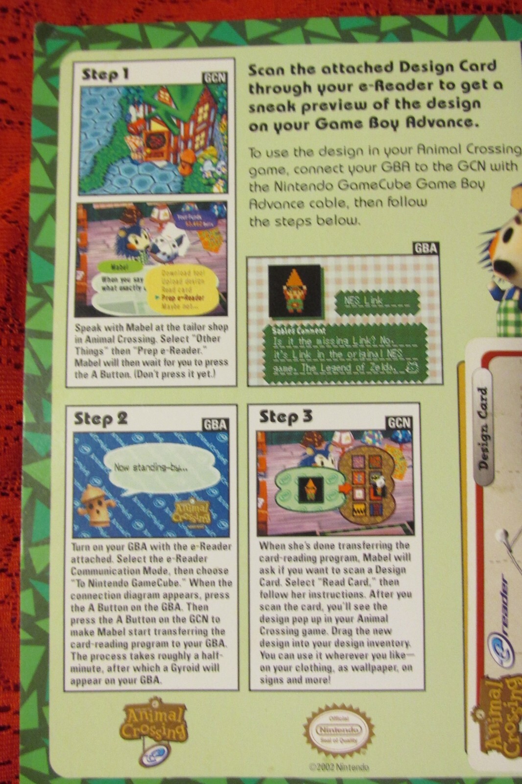 Gamecube Animal Crossing E-Reader Card - NES Link Design Card - Excellent! This is a brand new reader card on the original backing. From a smoke free home. Great for any collector of computer gaming items. Thanks for looking!