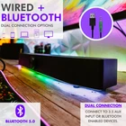 Quality Sound, Small Package: Our usb pc soundbar for desktop will be a great fit on your desk or beneath your monitor. Although small, it delivers crystal clear sound through dual drivers and diaphragms. Lighting for Any Vibe: Create the perfect gaming atmosphere. Our RGB computer speaker bar offers 5 lighting modes, Dynamic breathing, color cycling, and 3 static colors. Wired or Wireless, Your Choice: Connect the monitor soundbar directly to your computer via the 3.5mm AUX cable or connect wirelessly via Bluetooth 5.0 to any BT enabled device. Simple USB Powered: No batteries or wall outlets are needed. Just connect the pc sound bar to any USB device like a computer, laptop, tablet, power bank, etc.