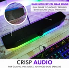 Quality Sound, Small Package: Our usb pc soundbar for desktop will be a great fit on your desk or beneath your monitor. Although small, it delivers crystal clear sound through dual drivers and diaphragms. Lighting for Any Vibe: Create the perfect gaming atmosphere. Our RGB computer speaker bar offers 5 lighting modes, Dynamic breathing, color cycling, and 3 static colors. Wired or Wireless, Your Choice: Connect the monitor soundbar directly to your computer via the 3.5mm AUX cable or connect wirelessly via Bluetooth 5.0 to any BT enabled device. Simple USB Powered: No batteries or wall outlets are needed. Just connect the pc sound bar to any USB device like a computer, laptop, tablet, power bank, etc. Product Description