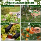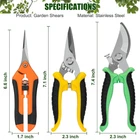 About This Item ✂️ Ultra Sharp Stainless Steel Blades: Precision-ground blades for sharp, rust-resistant cuts; crafted from premium stainless steel, ideal for all your pruning shears needs in both indoor and outdoor gardening. Ergonomic Rubber Grip: Non-slip, rubber-coated handles designed for comfort; reduces hand fatigue during extended use, equipped with a high-quality spring for smooth, effortless pruning. Safety Lock Mechanism: The gardening shears feature a secure safety lock to keep the blades closed when not in use; easy latch closure ensures safe storage, minimizing accidental injuries. Versatile Pruning Set: Includes three distinct blades for various pruning tasks; perfect for shaping plants, trimming flowers, and cutting light branches—ideal for gardening, florists, and outdoor plant care. Customer Support Promise: Reach out for any concerns regarding the garden clippers, and we'll provide timely support; committed to offering high-quality, reliable pruning shears and a seamless customer experience.