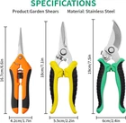 Garden Pruning Shears 3 Pack Gardening Shears Garden Scissors Stainless Steel Garden Shears Pruning Scissors Garden Clippers Pruning Shears for Gardening Garden Tools Item Description About this item 【ANTI-SLIP HANDLE DESIGN】: The two-color anti-slip handle of the fruit pruning shears is ergonomically designed made of high purity PP+TRP secondary injection molding. Garden Pruning Shears handle is comfortable to grip and save energy. Garden shears has strong toughness and strength, which provides a strong grip and toughness for long-term use. 【User-friendly Safety Lock】: Our garden shears have a safety locking mechanism to keep the sharp blades securely closed when not in use. After use the garden clippers, just close tightly and push on the latch, which can effectively reduce accidental injuries. This is a wonderful design of gardening supplies. 【SHARP CUTTING OF GARDEN SCISSORS】: This set of gardening shears is made of high quality stainless steel with good anticorrosion performance, heat treatment process, high blade hardness, more sharp and sturdy. You can easily to cut without damaging the vital stems and branches of your plants. Garden pruners is a good helper for your garden tools. 【PRECISION CUTTING】: Gardening scissors with ultra-sharp stainless steel blades are able to make precise cuts without damaging other plant parts when dealing with gardening work, more suitable for pruning trees, flowers, herbs, flowers, hydroponics plants, potted bonsai, houseplants, etc., gardening scissors set is designed to make your pruning work easier and more efficient. 【WIDELY USED】: Our pruning shears set include 3 different blades for a variety of general pruning work. Great for trimming flowers, plants, bonsai, hydroponics, herbs, light branches and so on. Garden shears are ideal for pruning needs and perfect gift for gardening friends. 【NOTE】: The blades of gardening scissors are very sharp, should be placed where children can not reach. 3 pack gardening shears of sharp blades. 1pcs pruning shear with straight tip blade, 1pcs plant shear with curved blade, 1pcs garden shears with serrated blade. These garden clippers are made of high-purity PP+TPR plastic and stainless steel blades.Pruning scissors can can easily handle all kinds of delicate pruning tasks. Our pruning shears set are great for trimming flowers, plants, bonsai, hydroponics, herbs, light branches and so on. 1.Please clean, dry or oil the blades of your pruning shears the after use to extend their life. 2.The blades of gardening scissors are very sharp, keep them far away from children. Payment Free Worldwide Shipping Shipping safe payment via paypal . Return 30 Day's returns