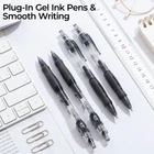 12 Pack Gel Pens: You will receive 12 pcs black ink retractable gel pens with large-capacity pen refill and large angle pen clip can make your writing more focused and efficient, which is also can be a great gift. Quick-Drying Ink & Large-Capacity Pen Refill : These ball point roller gel pens will dry quickly after writing, which can make your hands less likely to get dirty and keep the paper clean. Large capacity pen refills help you write last longer, suitable for office meeting and note writing. 0.7mm Fine Point Smooth Writing: 0.7mm bullet fine point with large capacity and quick dry ink smooth writing, no skip and easy to clean. You just need to lightly press the pen cap, and the tip will automatically pop out or retract. Exquisite Gel Pens Design: Ideal gel pen with transparent pen holder and comfortable anti-slip pen grip make your writing more focused. Large angle plug-in pen clip can help you firmly secure your pen to a notebook, backpack, or textbook and easy to carry. Multi Purpose Use: gel pen is suitable for adults and students for writing, diary, sketching, painting, scrapbooking, making gift cards, to meet your various needs in daily study and work.