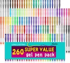 260 super valued feela gel pens pack includes 130 unique gel pen and 130 refills. Color assortment: Glitter, Neon Glitter, Neon, Metallic, Pastel, Swirl, and Standard. Suit for children and adult, great for coloring, doodling, drawing and sketching. With Color box packing, eco friendly and delicate. Tip size: 0.6-1.0mm. Super smooth writing and long lasting. Acid-free and non-toxic, conforms to ASTM D-4236. Performance&Satisfaction: We provide you with not only our high quality products but also our quick response service. Product Description