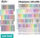 260 super valued feela gel pens pack includes 130 unique gel pen and 130 refills. Color assortment: Glitter, Neon Glitter, Neon, Metallic, Pastel, Swirl, and Standard. Suit for children and adult, great for coloring, doodling, drawing and sketching. With Color box packing, eco friendly and delicate. Tip size: 0.6-1.0mm. Super smooth writing and long lasting. Acid-free and non-toxic, conforms to ASTM D-4236. Performance&Satisfaction: We provide you with not only our high quality products but also our quick response service. Product Description
