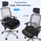 Gel Seat Cushions for Office Chairs Tailbone Pain X-Large, Black Product Details Brand: EVECOZY Special Feature: Cooling, Pressure Relief, Breathable, Removable Cover Color: Black Size: X-Large Fill Material: Gel Memory Foam Shape: Semicircular Age Range (Description): Adult Recommended Uses For Product: Reading, Sitting, Traveling, Studying, Resting Use for: Buttocks, Hip Material: Memory Foam Item Firmness Description: Soft Product Dimensions: 18.5"L x 17"W x 5"H Product Care Instructions: Machine Wash Number of Pieces: 1 Pattern: Solid Material Feature: Support, Soft, Breathable Variety: Memory Foam Seat Cushion Material Type Free: Latex Free Fabric Type: 100% Polyester Model Name: Gel Pressure Relief Seat Cushion Specific Uses For Product: Coccyx Pain Manufacturer: EVECOZY Product Dimensions: 18.5"L x 17"W Unit Count: 1.0 Count Item Weight: 3.79 pounds Country of Origin: China Item model number: BGMFSC-BB 32 Air Vents: Breathable butt cushion features 32 air holes for airflow. This design improves breathability, allowing air to circulate from the gel sheet and memory foam cushion to the base. Even long hours of sitting, our cushion reduces sweat and odors, providing a refreshing seating experience. Say goodbye to discomfort and hello to comfort with butt pillow Extra Large Seat Cushion: Chair pad is designed to fit snugly on most types of chairs, including office chairs/ computer chairs/ wheelchairs/ gaming chairs/ desk chairs/ metal chairs/ recliner chairs/ outdoor rocking chairs/ wicker chairs and more. Make the smart choice with our clever seat cushions Five layers of protection make up ergonomic office chair cushion: A soft cover/ breathable inner cover/ cooling gel layer/ memory foam pad with support & non-skid bottom layer. Each element is meticulously crafted to enhance comfort during long sitting Advice from a doctor: If you're dealing with issues like low back pain, discomfort in the ischial tuberosity/ coccyx pain/ sacrum discomfort/ hip pain consider trying pressure relief cushion. It serves as a buffer between butt and chair, keeping your body from leaning forward too much and promoting orthopedic sitting posture. By distributing pressure downward through the seat cushion, it helps alleviate pressure and subsequent pain. You might find it brings some unexpected relief Just wait until you discover: The seat cushion isn't just for office chairs, it can be placed wherever you need it. Whether you're working/ at home/ playing games/ traveling/ studying/ driving/ in truck/ on airplane/ or on bus, chair cushion can silently accompany you. It's for adults, seniors and who needs it Experience enhanced comfort with cushion featuring a seamless front design: Ensuring fit for your thighs without pressure points. This feature promotes blood circulation, relieves numbness and pain in the back of your legs