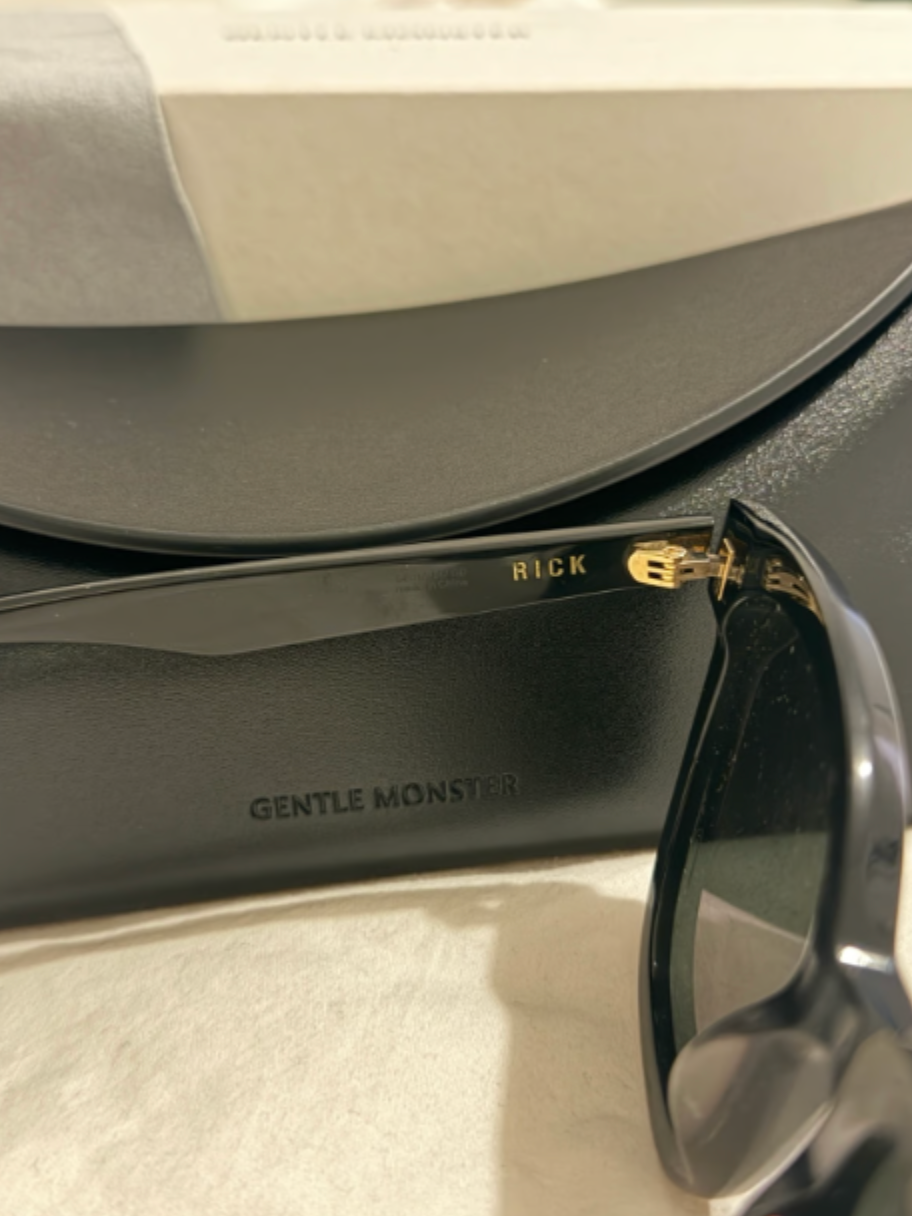 Gentle monster RICK sunglasses black. Worn and has light scratches but not noticeable unless you look closely. Comes with packaging and box.