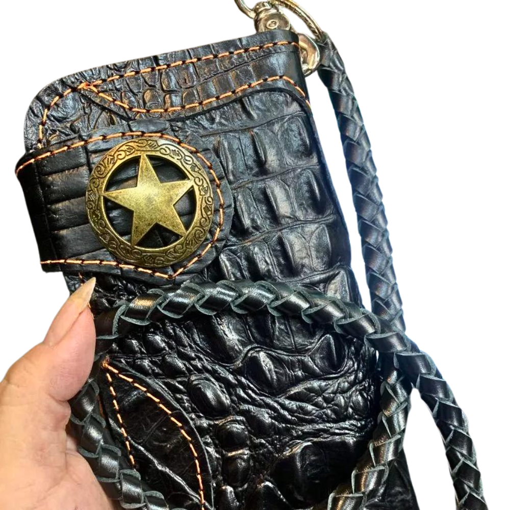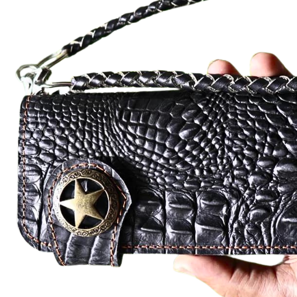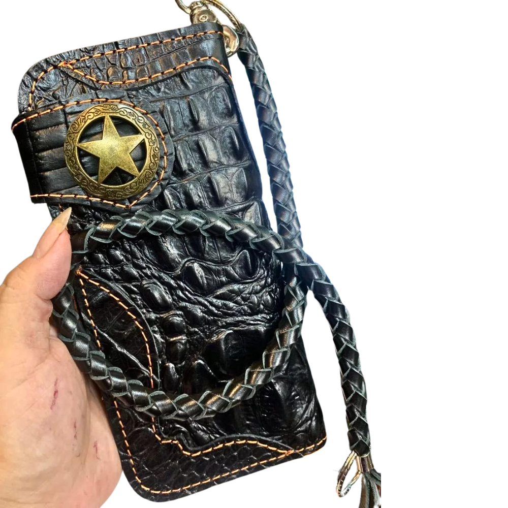 This handmade genuine leather wallet is a must-have for any biker! The sleek black design with button and zipper accents gives it a rugged yet stylish look. It's spacious enough to hold cards and cash comfortably, and the quality leather feels durable. Perfect as a gift or for personal use—definitely worth it!