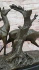 Condition : This sculpture is in perfect condition. Bronze Dimensions with Marble Base: Height 16.5" X Width 25" Marble Dimensions: Diameter 25.5" Height without base:15.5" Weight:71 LBS Inventory:53AL10538035 This massive bronze sculpture of a stag and two female deer, signed by Fiot, beautifully captures the grace and majesty of these woodland creatures. The dominant stag stands proudly, his impressive antlers reaching skyward, while the two female deer rest beside him in a serene yet watchful pose. The intricate detailing of their muscular forms, textured fur, and expressive features brings this scene to life, evoking the peaceful yet untamed spirit of nature. Handcrafted using the lost wax method, this genuine bronze artwork boasts a rich dark brown patina, enhancing the depth and realism of the sculpture. The careful attention to anatomical precision and natural movement reflects the artist’s deep admiration for wildlife, making this piece a stunning tribute to the beauty of the animal kingdom. The interplay between the three figures creates a harmonious composition, symbolizing family, protection, and the cycle of life in the wild. Resting on an oval black marble base, this exceptional sculpture is both a collector’s masterpiece and a statement piece for any home, lodge, or gallery. The sheer size and weight of the artwork give it a commanding presence, making it an ideal centerpiece for those who appreciate fine wildlife art and classic bronze craftsmanship. A testament to nature’s grandeur, this sculpture will undoubtedly captivate and inspire for generations to come. Hand Made Massive Bronze Sculpture of Stag And 2 Female Deer by Fiot by Hot Cast Video will open in a new window Using the eBay App? Paste link into a browser window: [isdntekvideo]