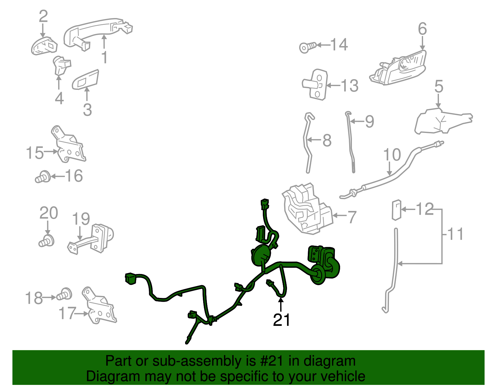 World Parts Direct Genuine GM Front Driver Side Door Wiring Harness 42681150 Part can be found as # 21 in the diagram above Product Description Without power window. This GM Genuine Part is designed, engineered, and tested to rigorous standards and is backed by General Motors Specifications Brand GM Manufacturer Part Number 42681150 SKU 42681150 Product Genuine GM Front Driver Side Door Wiring Harness 42681150 ONLY PART REFERENCE #21 ON THE DIAGRAM IS INCLUDED About Us WorldPartsDirect is a small, Texas based business located in the Dallas metroplex. There are about twenty of us that work tirelessly to get you the genuine, OEM parts you need at unbeatable prices. We pride ourselves in top quality customer service and our commitment to be the business we would want to shop with. We have one of the largest inventory networks in the country along with some of the most aggressive discounts. We love cars, and we love what we do! We hope you will love shopping with us , and we always welcome feedback on how we can make your shopping experience even better. Terms and Conditions Compatibility Guarantee (optional free service): Applies when you include your VIN during or before checkout. Simply click "Message to Seller" during checkout and include your VIN with any relevant details (ex: driver/ passenger side). Our fitment experts will confirm compatibility before shipping. If we determine that you purchased an incompatible part, we will correct your order if possible. If we cannot correct your order, we will notify you of the issue (ex: discontinued item) and give you the option to cancel. Part Authenticity and Warranty Guarantee: When you order from us, we guarantee that you will receive a genuine, OEM part. We do not stock anything aftermarket! Our parts are warrantied nationwide for 1 year at every Mopar (Chrysler/Dodge/Jeep/Ram) or General Motors (Chevrolet/Buick/GM/GMC) dealer in the country, depending on the brand of part you ordered. We are able to provide documentation that proves the validity of your purchase from our licensed dealership at anytime upon request. This documentation can be used to redeem this warranty if needed at the dealership of your choice and at no cost to you. Return Policy All of our products can be returned within 30 days. Please open a request for any of these reasons: Doesn't Fit Changed My Mind Found a Better Price Just Didn't Like it Ordered by Mistake The reason you pick has no impact on your refund amount, but it has a big impact on us as a seller. Choosing other reasons may delay the refund per an internal investigation and potential eBay appeal. If a part fails at anytime during the 1 year warranty period, any licensed new car dealership in the country that carries your brand of vehicle will replace the part for free. Simply request our dealer invoice for the part and provide it to your preferred dealer along with the defective part. Home • Newsletter Signup • Contact Us Copyright © 2025 World Parts Direct , All rights reserved. Solution by RevolutionParts, Inc. :: Design by OCDesignsOnline