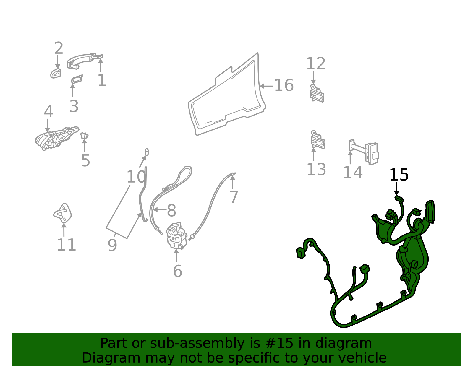 World Parts Direct Genuine GM Front Driver Side Door Wiring Harness 42760868 Part can be found as # 15 in the diagram above Product Description This GM Genuine Part is designed, engineered, and tested to rigorous standards and is backed by General Motors Specifications Brand GM Manufacturer Part Number 42760868 SKU 42760868 Product Genuine GM Front Driver Side Door Wiring Harness 42760868 Replaces 42707658, 42747268 ONLY PART REFERENCE #15 ON THE DIAGRAM IS INCLUDED About Us WorldPartsDirect is a small, Texas based business located in the Dallas metroplex. There are about twenty of us that work tirelessly to get you the genuine, OEM parts you need at unbeatable prices. We pride ourselves in top quality customer service and our commitment to be the business we would want to shop with. We have one of the largest inventory networks in the country along with some of the most aggressive discounts. We love cars, and we love what we do! We hope you will love shopping with us , and we always welcome feedback on how we can make your shopping experience even better. Terms and Conditions Compatibility Guarantee (optional free service): Applies when you include your VIN during or before checkout. Simply click "Message to Seller" during checkout and include your VIN with any relevant details (ex: driver/ passenger side). Our fitment experts will confirm compatibility before shipping. If we determine that you purchased an incompatible part, we will correct your order if possible. If we cannot correct your order, we will notify you of the issue (ex: discontinued item) and give you the option to cancel. Part Authenticity and Warranty Guarantee: When you order from us, we guarantee that you will receive a genuine, OEM part. We do not stock anything aftermarket! Our parts are warrantied nationwide for 1 year at every Mopar (Chrysler/Dodge/Jeep/Ram) or General Motors (Chevrolet/Buick/GM/GMC) dealer in the country, depending on the brand of part you ordered. We are able to provide documentation that proves the validity of your purchase from our licensed dealership at anytime upon request. This documentation can be used to redeem this warranty if needed at the dealership of your choice and at no cost to you. Return Policy All of our products can be returned within 30 days. Please open a request for any of these reasons: Doesn't Fit Changed My Mind Found a Better Price Just Didn't Like it Ordered by Mistake The reason you pick has no impact on your refund amount, but it has a big impact on us as a seller. Choosing other reasons may delay the refund per an internal investigation and potential eBay appeal. If a part fails at anytime during the 1 year warranty period, any licensed new car dealership in the country that carries your brand of vehicle will replace the part for free. Simply request our dealer invoice for the part and provide it to your preferred dealer along with the defective part. Home • Newsletter Signup • Contact Us Copyright © 2025 World Parts Direct , All rights reserved. Solution by RevolutionParts, Inc. :: Design by OCDesignsOnline