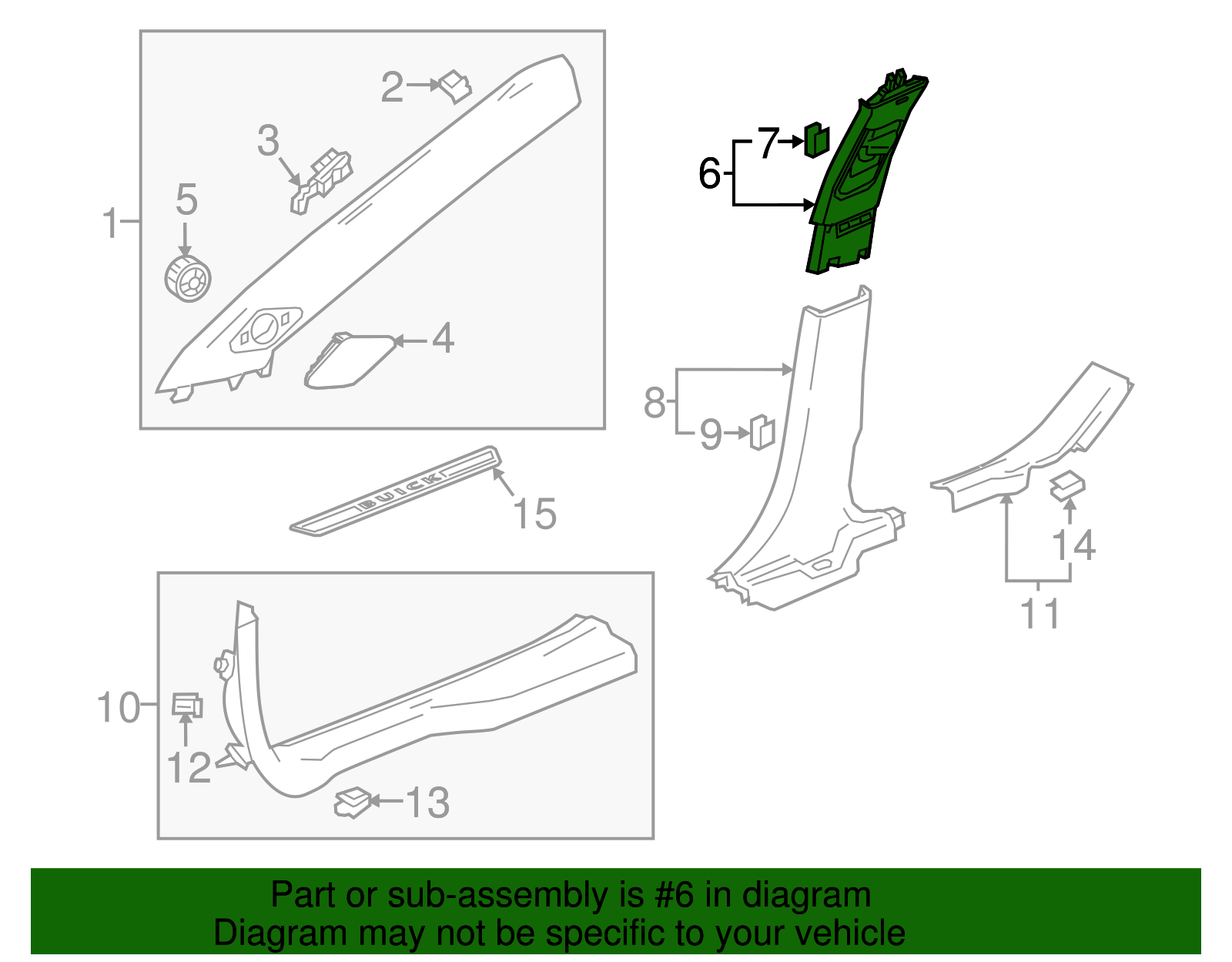 aaronchevrolet Genuine GM Jet Black Driver Side Center Pillar Upper Trim Panel 26215959 Part can be found as # 6 in the diagram above Product Description Black. Helps define the appearance of your vehicle's interior This GM Genuine Part is designed, engineered, and tested to rigorous standards and is backed by General Motors Collision parts are designed to help promote proper and safe repair Specifications Brand GM Manufacturer Part Number 26215959 SKU 26215959 Product Genuine GM Jet Black Driver Side Center Pillar Upper Trim Panel 26215959 ONLY PART REFERENCE #6 ON THE DIAGRAM IS INCLUDED WARNING : May cause cancer and reproductive harm. See www.P65Warnings.ca.gov for more info. Terms and Conditions Thank you for shopping with us. Please find our policies below. If you have any other questions, please don't hesitate to contact us. Shipping Terms If you are located in Alaska, Hawaii or Puerto Rico Please contact us via eBay email to discuss shipping cost In stock orders ship within 24 hours. Weekend orders will be processed the next business day. If a part is not in stock and must be ordered from the manufacturer, it usually takes 2-3 days to arrive to us and will be promptly shipped to you. Most of the orders are shipped complete within 2-3 business days. A few of the parts ordered from the manufacturer may take up to 5-6 business days to arrive and will shipped to you immediately. Depending upon location, ground shipments usually take 2-7 days. Your order may be shipped Overnight for an additional cost. Oversized shipments will be additional; you will be contacted prior to shipping for approval. We cannot guarantee transit times for ground and oversize orders. Shipping Carrier substitutions may be made at our determination in an attempt to reduce shipping cost to the customer. We do not ship internationally. In the unlikely event that a part has been placed on backorder or discontinued, we will do our best to try and find one for you as quickly as possible. We do not ship COD orders. Return Policy Contact us to arrange for any returns. A copy of the invoice will need to be included with the return. Parts must be resaleable and in the original packaging. We cannot take back used parts. We cannot take back installed or tried parts. Electrical parts are not returnable. We do reserve the right to refuse and return any parts we find have been installed, are used or do not meet the above criteria. Return request need to be within 30 days of receipt. Cancellation Policy An order or a portion of an order may be cancelled up until the time it is shipped and no longer in our possession. Home • Newsletter Signup • Contact Us Copyright © 2025 aaronchevrolet , All rights reserved. Solution by RevolutionParts, Inc. :: Design by OCDesignsOnline