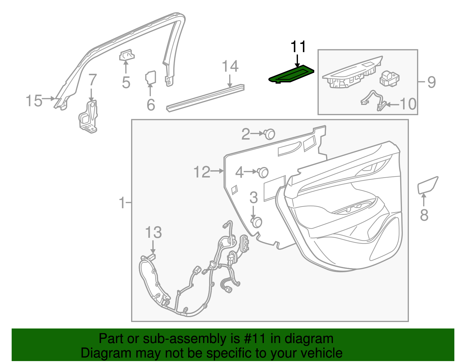 World Parts Direct Genuine GM Jet Black Rear Driver Side Door Armrest Pull Cup Bolt Cap 90925923 Part can be found as # 11 in the diagram above Product Description Installed in your vehicle's interior door pull handle for a finished appearance This GM Genuine Part is designed, engineered, and tested to rigorous standards and is backed by General Motors Collision parts are designed to help promote proper and safe repair Specifications Brand GM Manufacturer Part Number 90925923 SKU 90925923 Product Genuine GM Jet Black Rear Driver Side Door Armrest Pull Cup Bolt Cap 90925923 ONLY PART REFERENCE #11 ON THE DIAGRAM IS INCLUDED About Us WorldPartsDirect is a small, Texas based business located in the Dallas metroplex. There are about twenty of us that work tirelessly to get you the genuine, OEM parts you need at unbeatable prices. We pride ourselves in top quality customer service and our commitment to be the business we would want to shop with. We have one of the largest inventory networks in the country along with some of the most aggressive discounts. We love cars, and we love what we do! We hope you will love shopping with us , and we always welcome feedback on how we can make your shopping experience even better. Terms and Conditions Compatibility Guarantee (optional free service): Applies when you include your VIN during or before checkout. Simply click "Message to Seller" during checkout and include your VIN with any relevant details (ex: driver/ passenger side). Our fitment experts will confirm compatibility before shipping. If we determine that you purchased an incompatible part, we will correct your order if possible. If we cannot correct your order, we will notify you of the issue (ex: discontinued item) and give you the option to cancel. Part Authenticity and Warranty Guarantee: When you order from us, we guarantee that you will receive a genuine, OEM part. We do not stock anything aftermarket! Our parts are warrantied nationwide for 1 year at every Mopar (Chrysler/Dodge/Jeep/Ram) or General Motors (Chevrolet/Buick/GM/GMC) dealer in the country, depending on the brand of part you ordered. We are able to provide documentation that proves the validity of your purchase from our licensed dealership at anytime upon request. This documentation can be used to redeem this warranty if needed at the dealership of your choice and at no cost to you. Return Policy All of our products can be returned within 30 days. Please open a request for any of these reasons: Doesn't Fit Changed My Mind Found a Better Price Just Didn't Like it Ordered by Mistake The reason you pick has no impact on your refund amount, but it has a big impact on us as a seller. Choosing other reasons may delay the refund per an internal investigation and potential eBay appeal. If a part fails at anytime during the 1 year warranty period, any licensed new car dealership in the country that carries your brand of vehicle will replace the part for free. Simply request our dealer invoice for the part and provide it to your preferred dealer along with the defective part. Home • Newsletter Signup • Contact Us Copyright © 2025 World Parts Direct , All rights reserved. Solution by RevolutionParts, Inc. :: Design by OCDesignsOnline