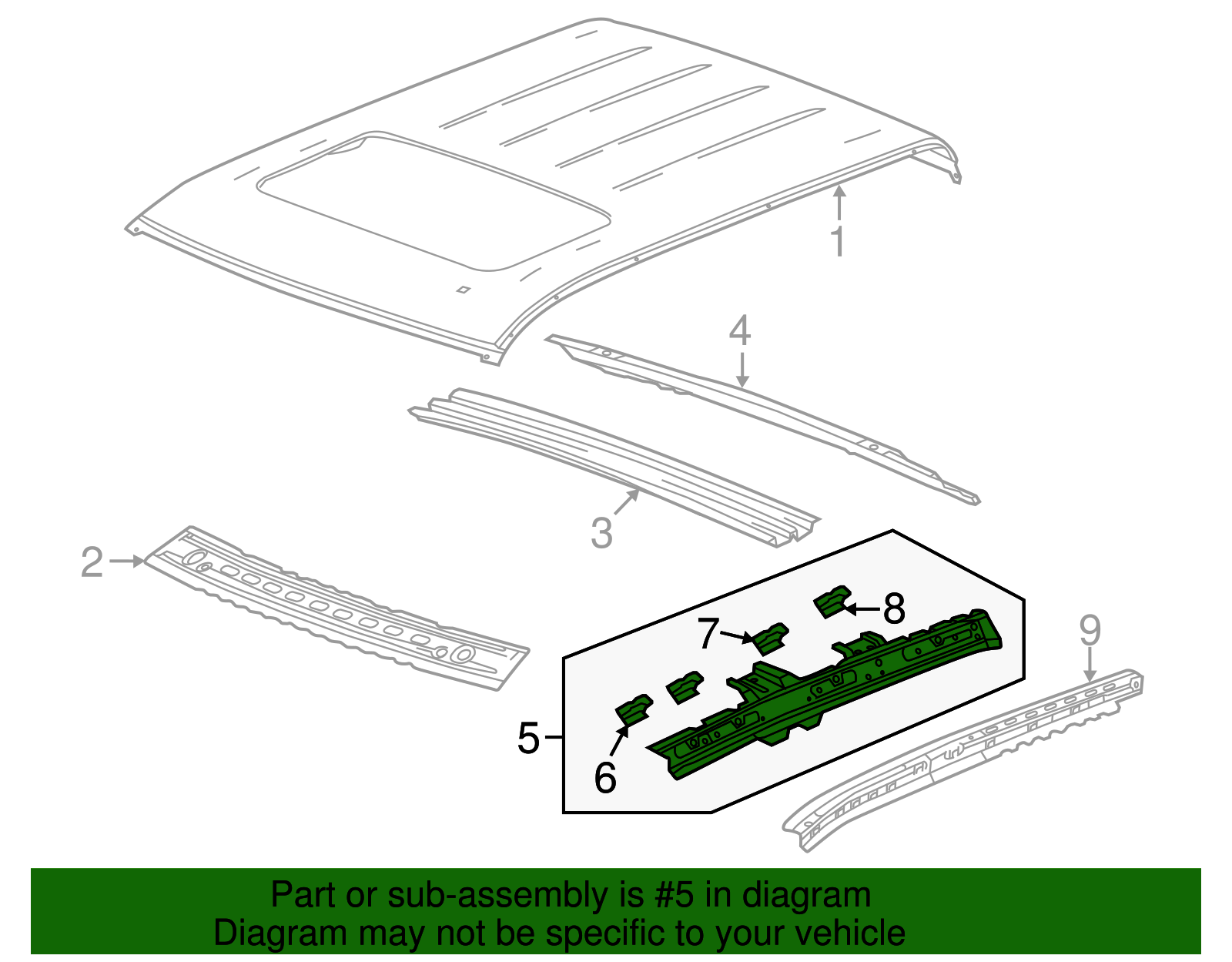 World Parts Direct Genuine GM Driver Side Roof Inner Side Rail 84308329 Part can be found as # 5 in the diagram above Product Description Crew cab with sunroof. Provides an attachment point for components to secure cargo to your vehicle's roof This GM Genuine Part is designed, engineered, and tested to rigorous standards and is backed by General Motors . Collision parts are designed to help promote proper and safe repair Specifications Brand GM Manufacturer Part Number 84308329 SKU 84308329 Product Genuine GM Driver Side Roof Inner Side Rail 84308329 Replaces 22967993 ONLY PART REFERENCE #5 ON THE DIAGRAM IS INCLUDED About Us WorldPartsDirect is a small, Texas based business located in the Dallas metroplex. There are about twenty of us that work tirelessly to get you the genuine, OEM parts you need at unbeatable prices. We pride ourselves in top quality customer service and our commitment to be the business we would want to shop with. We have one of the largest inventory networks in the country along with some of the most aggressive discounts. We love cars, and we love what we do! We hope you will love shopping with us , and we always welcome feedback on how we can make your shopping experience even better. Terms and Conditions Compatibility Guarantee (optional free service): Applies when you include your VIN during or before checkout. Simply click "Message to Seller" during checkout and include your VIN with any relevant details (ex: driver/ passenger side). Our fitment experts will confirm compatibility before shipping. If we determine that you purchased an incompatible part, we will correct your order if possible. If we cannot correct your order, we will notify you of the issue (ex: discontinued item) and give you the option to cancel. Part Authenticity and Warranty Guarantee: When you order from us, we guarantee that you will receive a genuine, OEM part. We do not stock anything aftermarket! Our parts are warrantied nationwide for 1 year at every Mopar (Chrysler/Dodge/Jeep/Ram) or General Motors (Chevrolet/Buick/GM/GMC) dealer in the country, depending on the brand of part you ordered. We are able to provide documentation that proves the validity of your purchase from our licensed dealership at anytime upon request. This documentation can be used to redeem this warranty if needed at the dealership of your choice and at no cost to you. Return Policy All of our products can be returned within 30 days. Please open a request for any of these reasons: Doesn't Fit Changed My Mind Found a Better Price Just Didn't Like it Ordered by Mistake The reason you pick has no impact on your refund amount, but it has a big impact on us as a seller. Choosing other reasons may delay the refund per an internal investigation and potential eBay appeal. If a part fails at anytime during the 1 year warranty period, any licensed new car dealership in the country that carries your brand of vehicle will replace the part for free. Simply request our dealer invoice for the part and provide it to your preferred dealer along with the defective part. Home • Newsletter Signup • Contact Us Copyright © 2025 World Parts Direct , All rights reserved. Solution by RevolutionParts, Inc. :: Design by OCDesignsOnline