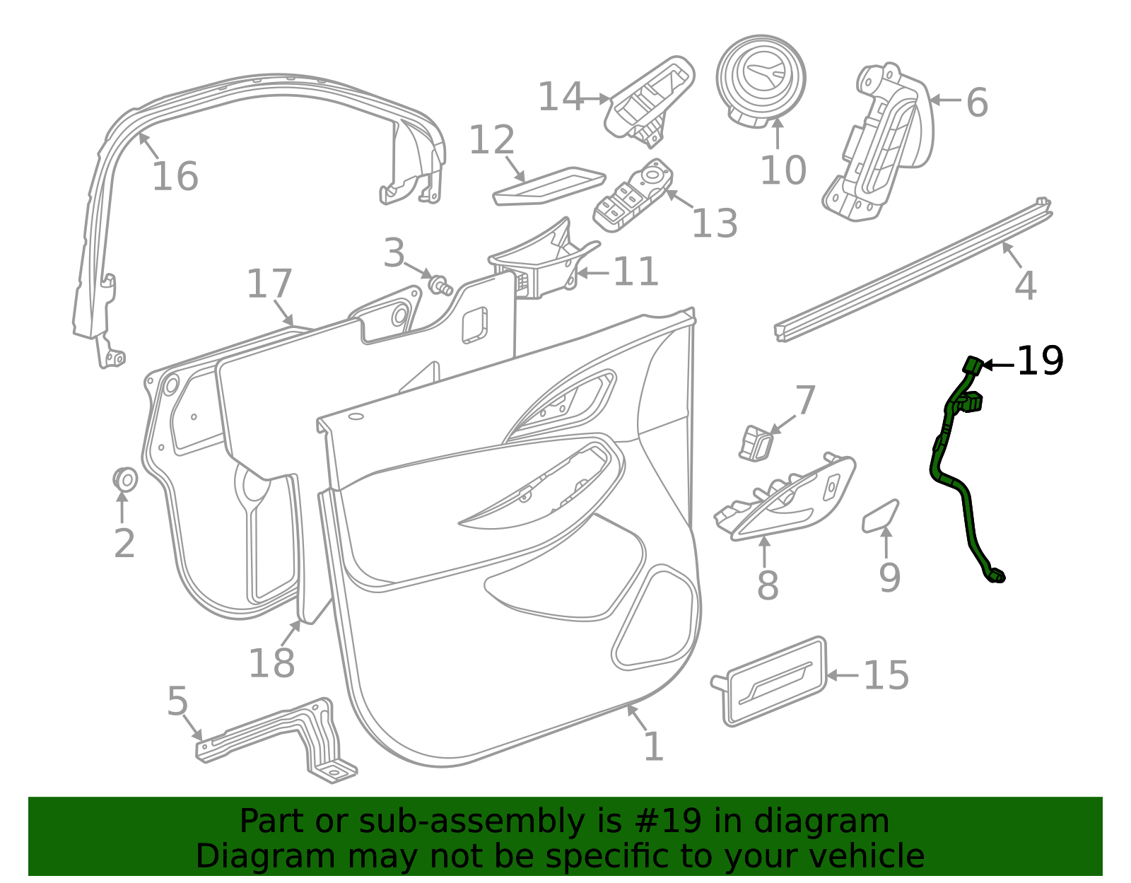 Replaces Part Number:42707679Fitment Type:Direct ReplacementProduct Name:Genuine GM Rear Driver Side Door Wiring Harness 42747289Brand:GMParts Included:ONLY PART REFERENCE #19 ON THE DIAGRAM IS INCLUDEDYear:2020 2021Make:BuickGenuine OEM:YesManufacturer Part Number:42747289Model:Encore GXSKU:42747289Warranty:1 Year