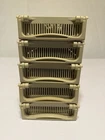 This bundle of 5 vintage hard drive caddies features a beige color and is made of rigid plastic. Each case provides a secure housing for a hard drive disc, offering a reliable storage solution for your computer or networking needs. The genuine design ensures quality and durability, making these caddies a convenient and practical addition to your storage setup. Bundle of five of them. 4 1/2 x 7 x 1 1/2