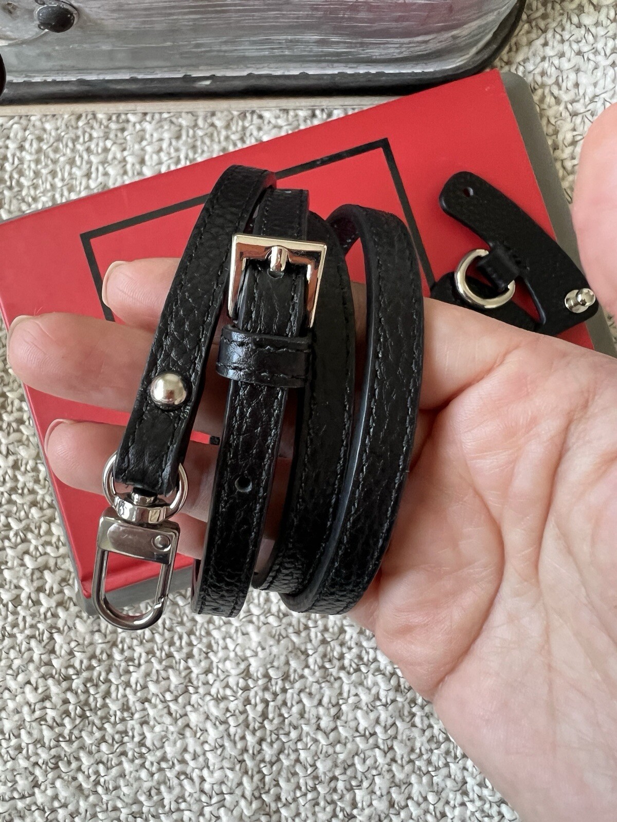 High quality, petite crossbody shoulder strap replacement. Perfect for your small to medium size handbags. Optional DIY attachment tabs included. This is a generic leather accessory. - Color Black - Silver- tone hardware - Snap hook - Adjustable & removable - Measurements: 1/4 Width, 42" to 49" Length Fast USA Shipping