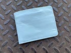 White Card Holder Genuine Leather Billfold Purse Bifold Handmade Wallet Money fold Hand Made Genuine Real Leather Color: White Size: 9 inches length (opened) x 3 1/2 inches wide, 4 1/2 inches (closed) 5 slots for credit/bank cards 2 separated slots for bills, one with zip 2 Hidden pocket behind the credit/bank card slot 1 coin pocket with zip Made in Paksitan Weight = 1.5 Oz Brand new. never used.