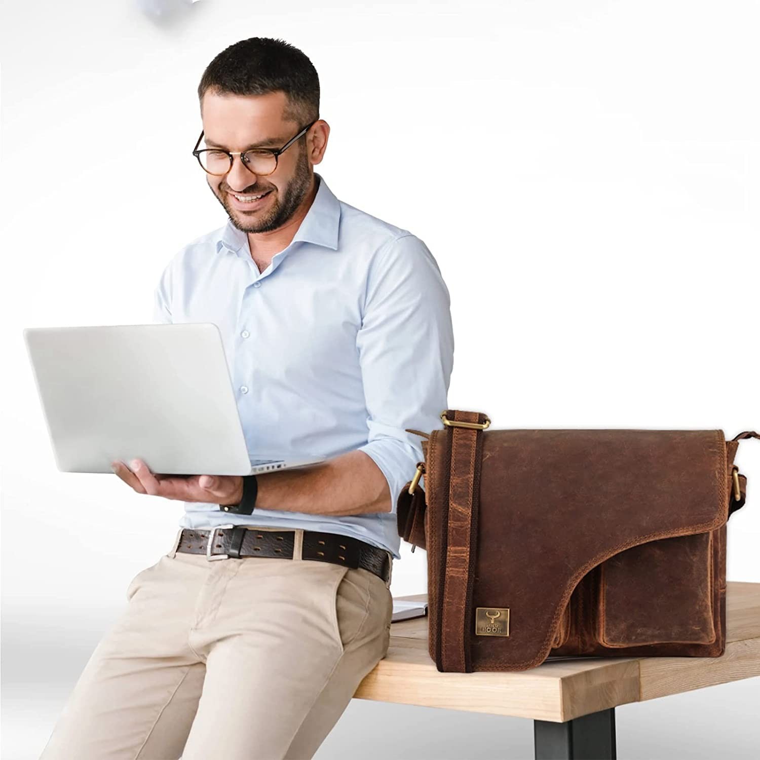 Messenger bags are never out of trend. These are the best choice to carry along for your busy lifestyle. This Wild-Hook leather messenger bag is designed in a way to carry all your essentials in one place in an organized way with pockets and compartments. The unbeatable design, durable hardware, and ample space make this bag ideal to match your style statement. The unique build and decent design uplift your character and personality by adding a sophisticated style to your attire. The premium craftsmanship reinforced stitching, high-quality accessories, and multiple testing make it durable and comfortable. Wild-Hook ensures to deliver the best to its customers. Our products go through various testings before packaging the final product. Material: crafted using premium materials Real leather is used, along with smooth zippers, golden-colored brass hardware for the hooks, and polycotton for the interior lining. This premium full-grain leather bag will last you a lifetime thanks to its velvety feel, high-quality zippers, sturdy straps, and carefully stitched threading. Dimensions and weight: 11 x 9 x 3 inches. Adjustable shoulder drop length: 60-120 cm 1080 grams in weight. The most secure and fashionable way to transport your iPad, makeup kit, and workplace necessities. It has a nice finish and a spacious interior. Carry-on bag Structure: Many compartments accommodate your daily demands while organising your possessions. Exterior: Two small pockets in front for cell phones, etc., and a full front flap with a magnetic closure for easy access. Occasions: Easily fits all of your belongings! The ideal man's leather bag for daily usage, work, travel, the outdoors, hiking, and other hobbies. A wonderful leather man's handbag for everyday carry or emergency supplies! Trust in Wild-Hook: Each of our products undergoes extensive testing for quality, tenacity, tear resistance, and wear and tear. We have a good feeling that you'll appreciate the effort we put into making this bag.