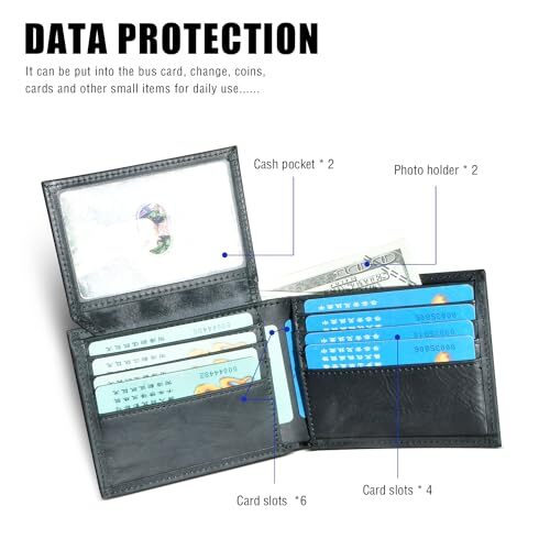 BULLCAPTAIN Genuine Leather Mens Wallet RFID Bifold Large Capacity Card Holder