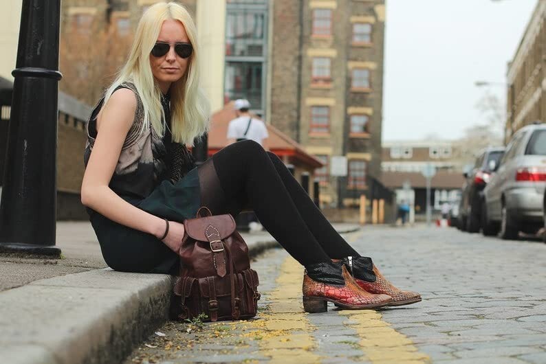 Size details: height 11 inches, width 10 inches , 4 inches Material : genuine leather Compartment : three outside pockets and both a leather drawstring and buckle closure, this bag is perfect for stashing all your belongings, whilst not compromising on style with its beautiful lining. This leather backpack is not only practical but also incredibly stylish. Its sleek design and rich color create a timeless and sophisticated look that will never go out of style. Whether you're headed to the office, school, or traveling abroad, this backpack will elevate any outfit and make a statement. Please note that any variation in colour and any natural markings are proof that this bag is made from genuine leather and in no way affects the quality of the bag. Care: Occasionally use leather cream or gel to keep moisturised.
