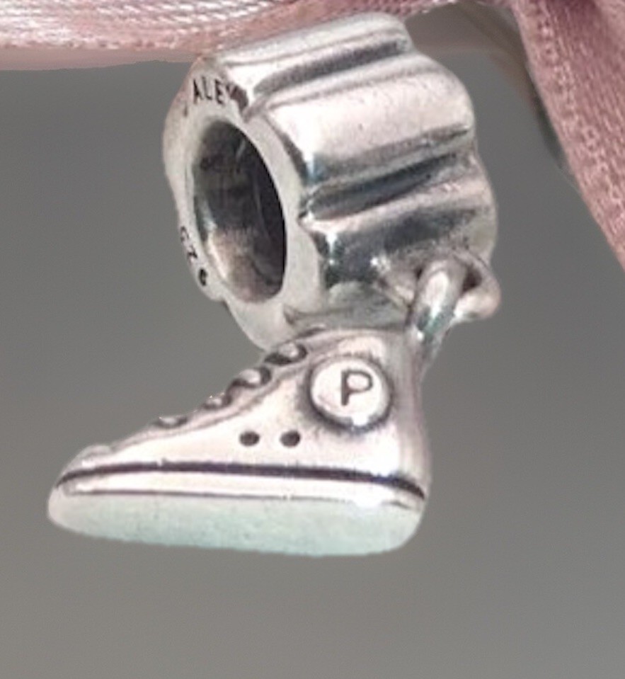 This Genuine Pandora Silver Hi-top Sneaker Trainer Dangle Charm is a vintage piece made of sterling silver with a 925 metal purity. The charm is stackable and signed by the brand PANDORA. It is perfect for various occasions such as Mother's Day, engagement, Christmas, graduation, wedding, anniversary, birthday, and Valentine's Day. This unique charm features a hi-top sneaker design that can add a touch of style to any charm bracelet or necklace.”No original box/pouch”